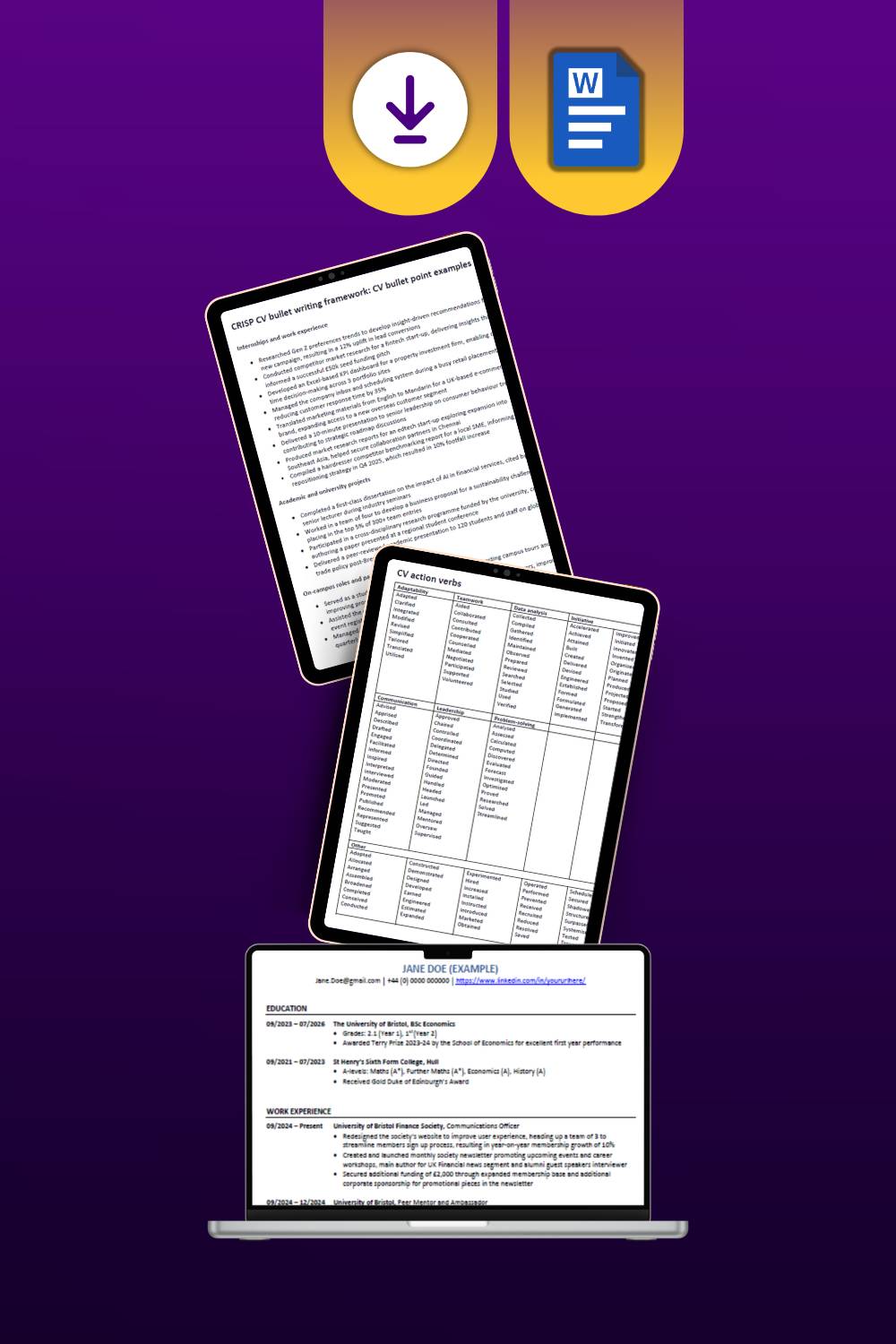 A plug-and-play UK CV template plus professionally written bullet examples so you can stop guessing and start getting interviews.