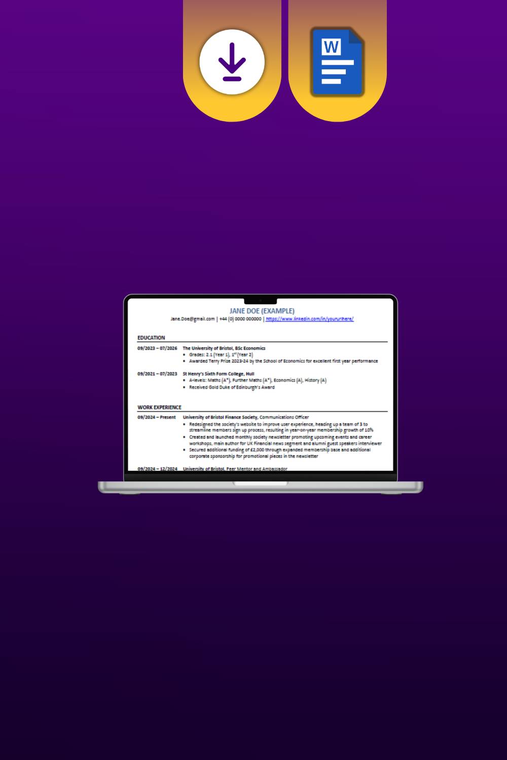 - Completed CV example so you can see what “good” looks like